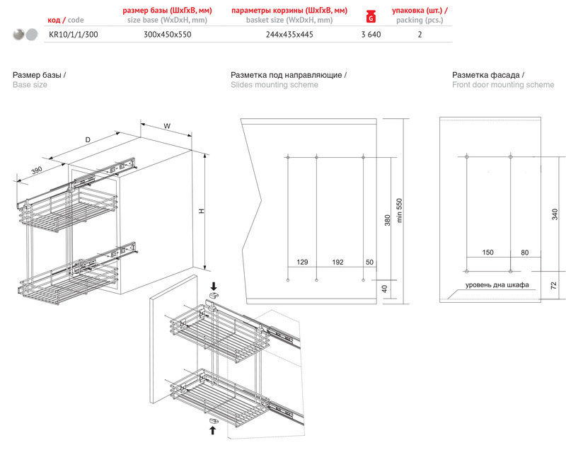 Выдвижная корзина для кухни KR10/1/1/300