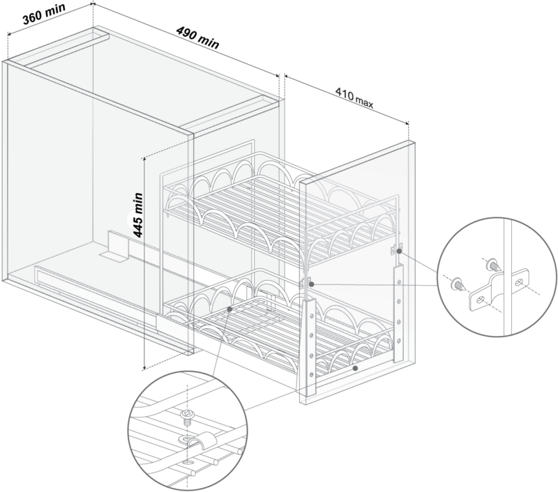 Выдвижная корзина для кухни KR18/2/1/400